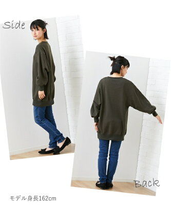 トップス・チュニック 裏起毛 ロング丈 ゆるシルエット トレーナー M/L ニッセン nissen