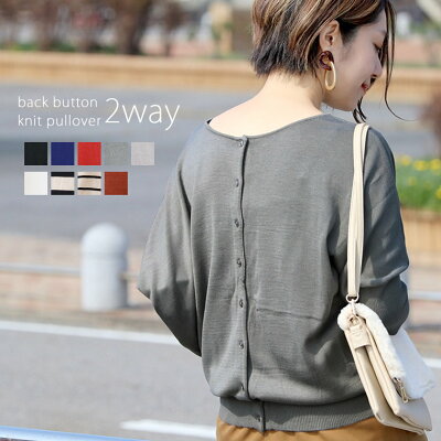 後ろボタン2WAYニットプルオーバー 【メール便可/ma3】 【1月7日9:59までメール便送料無料】 トップス レディース ニット 秋冬 カーディガンでも着られる/ニット/7分袖/2WAY/ドルマン