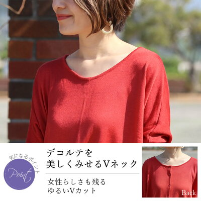 商品の特徴 デコルテラインをきれいに見せる緩やかなVネックにゆるいドルマンシルエット、後ろボタンデザインが女性らしいニットプルオーバーは、カーディガンとしても使える優秀2WAYアイテム。