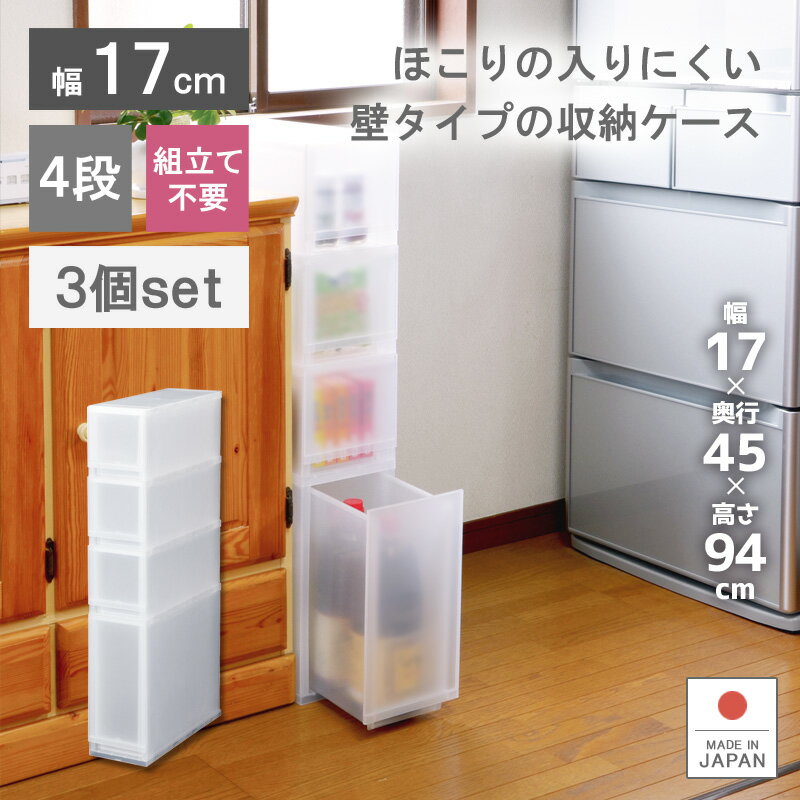 《お徳用3個セット》【プラストFR17031】深型 収納ボックス 幅17cm 4段 スリム スキマ収納 衣装ケース 収納ケース 子供服 キッチン 日本製 引き出し プラスチック製 シンプル スッキリ 積み重ね オムツ リビング 押入れ クローゼット 半透明